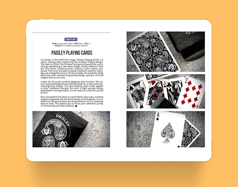 + Paisley: Find out what we think about Paisley Playing Cards, a classic looking deck inspired by the timeless Paisley design by the Dutch Card House Company.