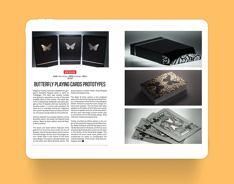 + Butterfly Prototypes: 3 new prototype decks printed by Cartamundi in stunning gold and silver foil. Check it out!