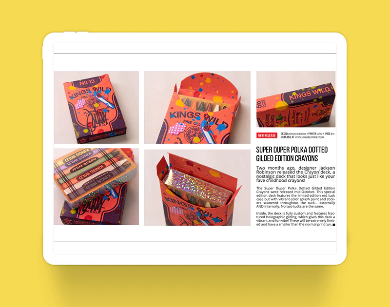 + Crayon: The Super Duper Polka Dotted Gilded Edition Crayons! This special edition deck features vibrant color splash paint and stickers scattered throughout the tuck.